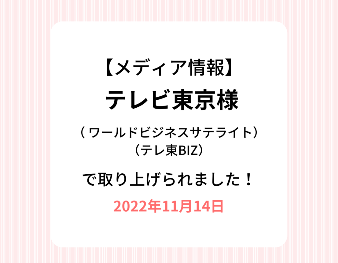 【TV放送/オンライン記事】11/14 テレビ東京様(ワールドビジネスサテライト、テレ東BIZ)で取り上げていただきました。