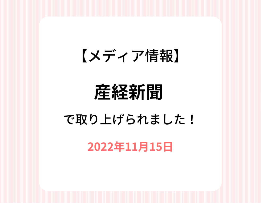 【新聞記事】11/15 産経新聞にて取り上げていただきました。