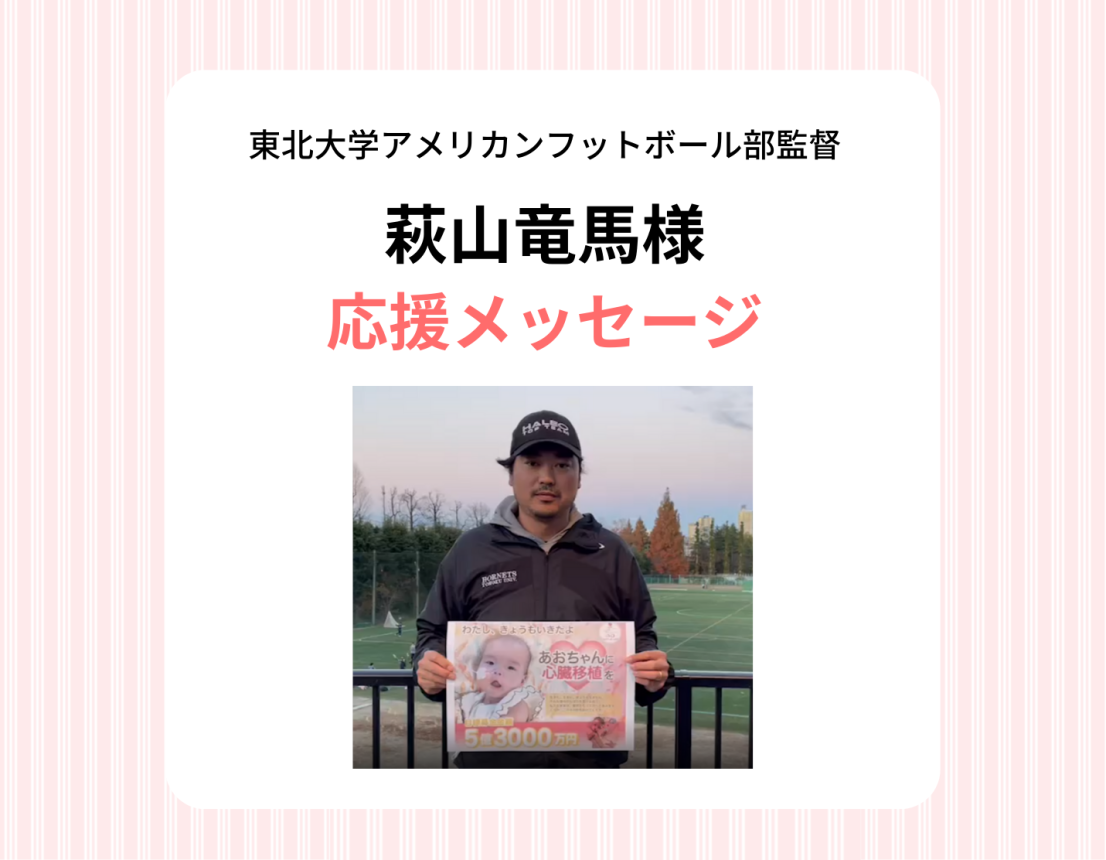 同い年の子供を持つ親としても、支援の輪が広がり、あおちゃんが元気になった幸せな家族と一緒に過ごすことを心から願っています。」