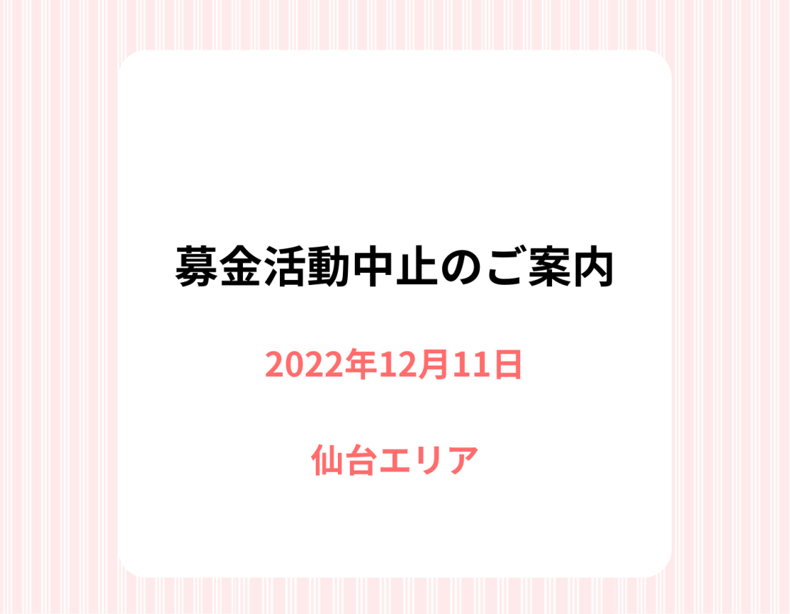 (募金活動・中止)12/11 仙台エリアにて募金活動は中止とさせて頂きます。