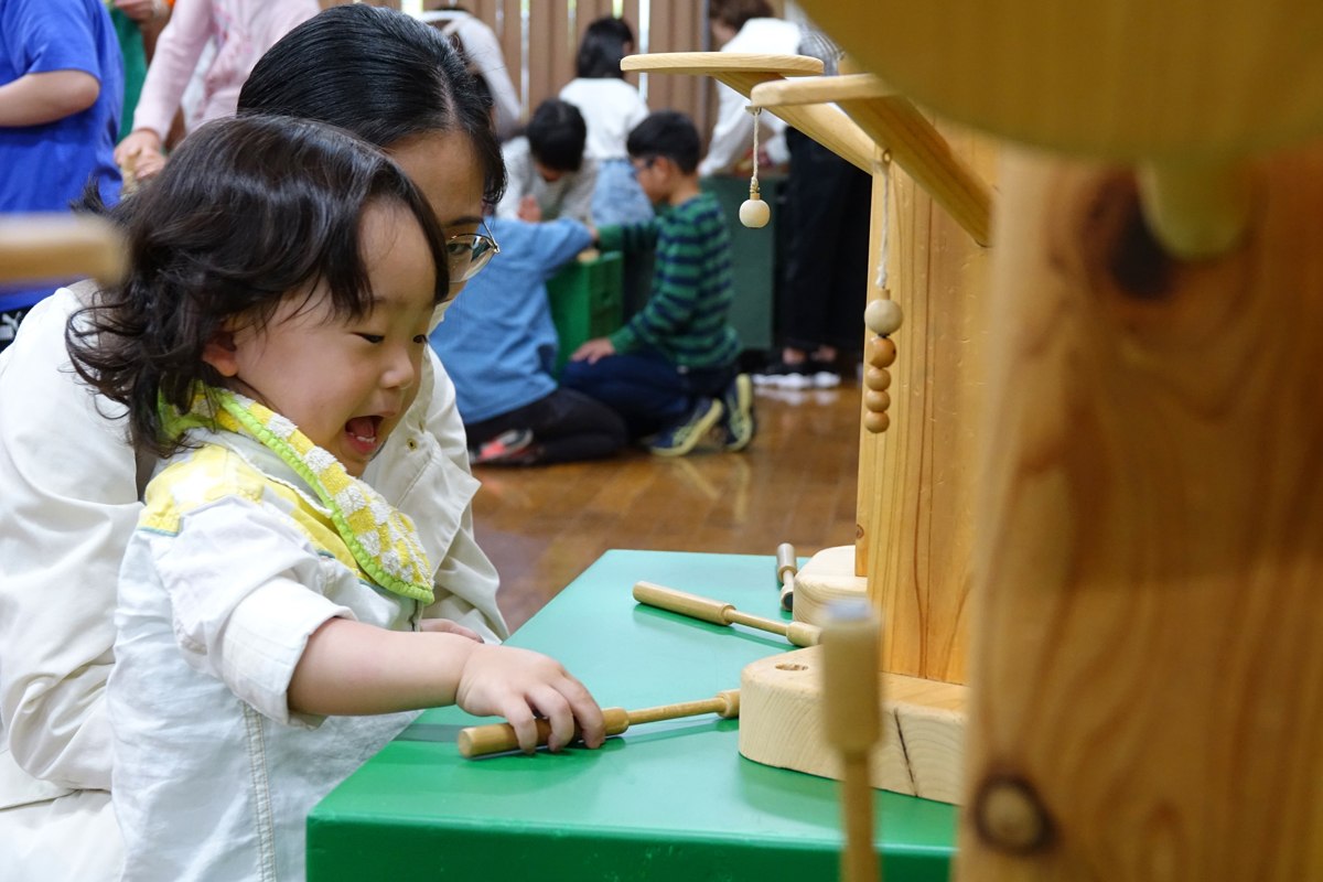その要望を受けて、七尾市にある「花嫁のれん館」において、移動型おもちゃ美術館「木育キャラバン」を5月6日に開催してきました。