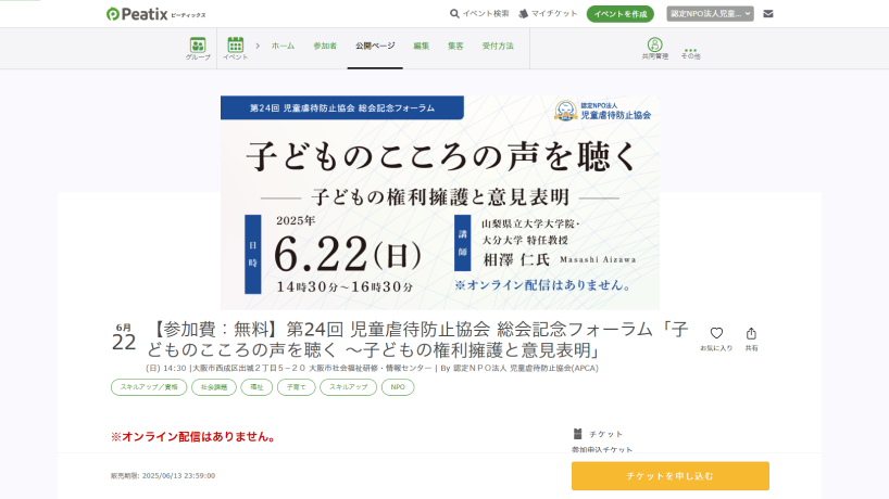 2025-06-09 11:43第24回 児童虐待防止協会 総会記念フォーラム限定100名。 残り4席です。2025-06-09 11:43第24回 児童虐待防止協会 総会記念フォーラム限定100名。 残り4席です。