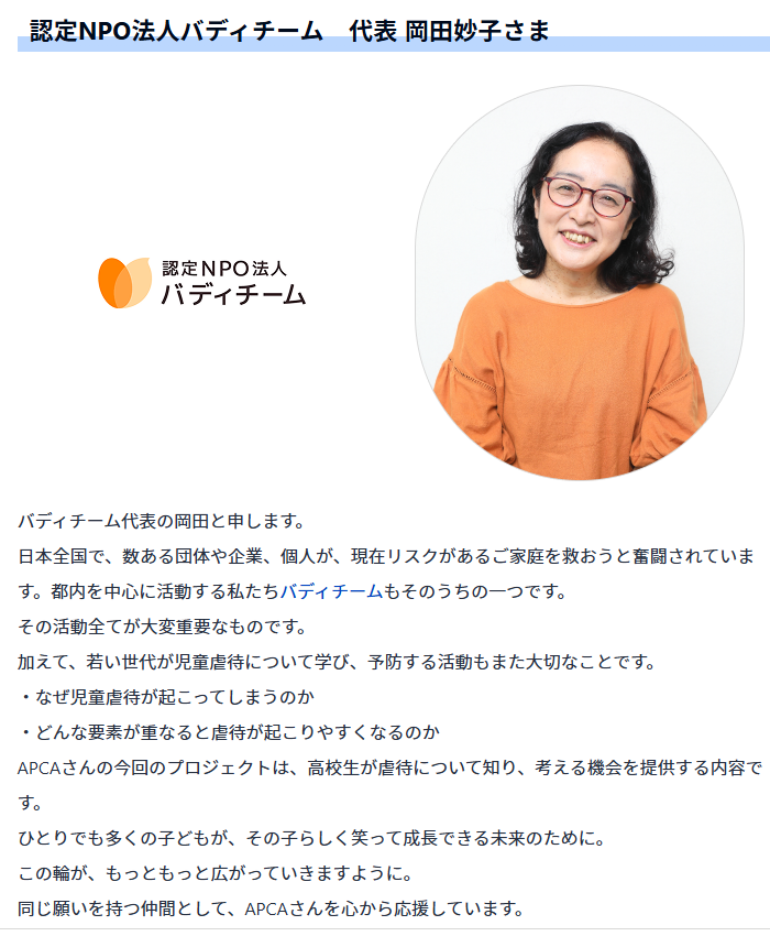 児童虐待予防に向き合って35年。虐待予防教育「ティーンズAPCA」で若者に虐待に関する正しい知識を伝えたい。
