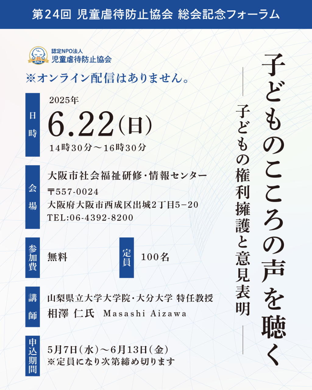 第24回 児童虐待防止協会 総会記念フォーラム