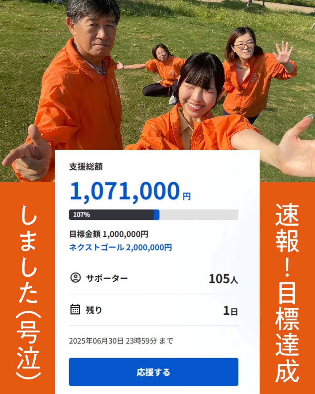 みなさまのあたたかいご支援のおかげで、ファーストゴールの100万円を達成することができました。本当にありがとうございます!