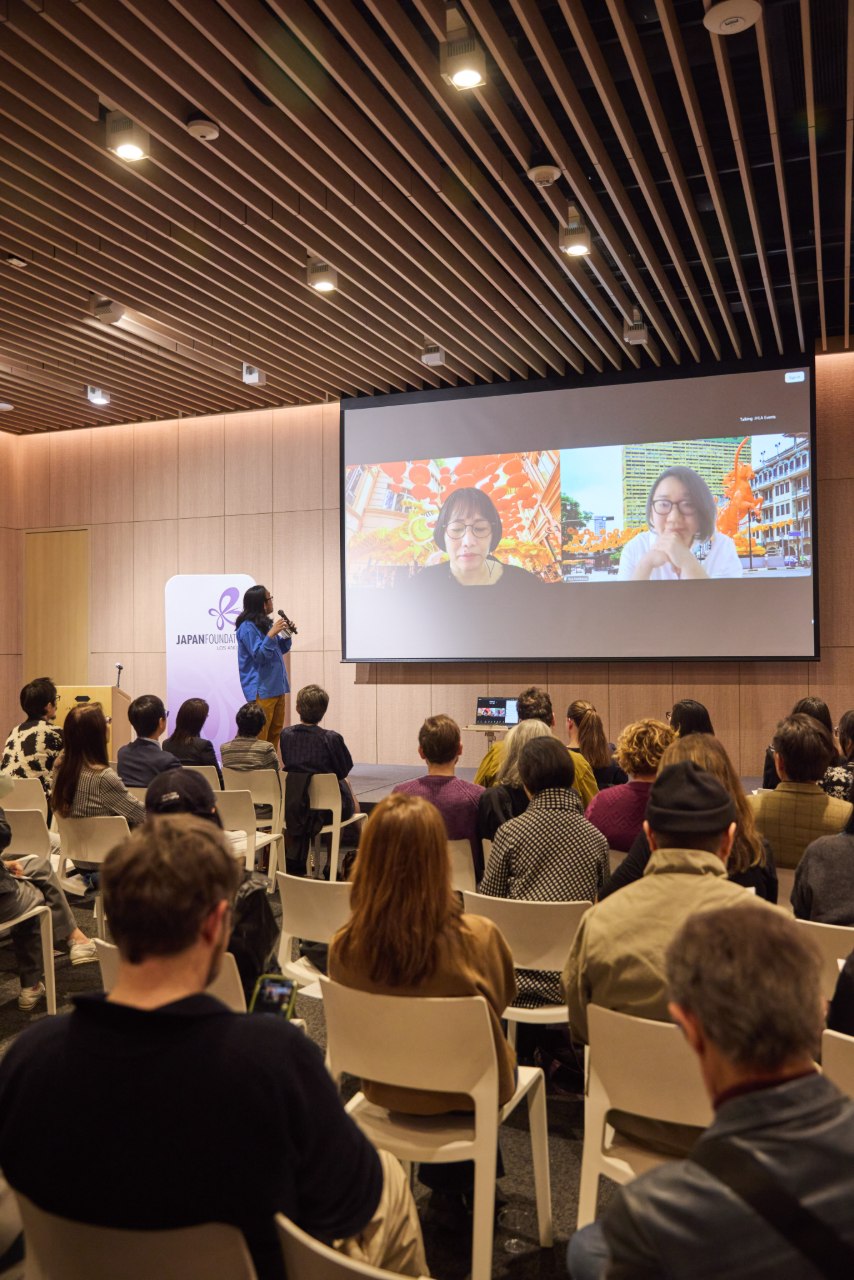 さらに、2026年日本館における様々なコラボレーション企画も発表されました。韓国館からはアーティストを代表しGoen Choiさん、キュレーターのBinna Choiさん、アシスタントキュレーターのEugene Hannah Parkさんがオンラインで登壇し、日本館とのコラボレーションが発表されました。クラウドファンディングのリターンとして、Noguchi Museumとのコラボレーションも紹介され、会場の期待感はさらに高まりました。