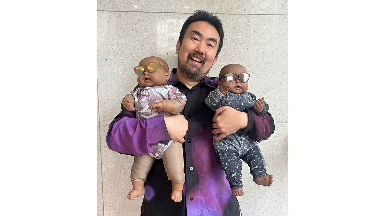 また、赤ちゃんたちがかけているミラーレンズのサングラスにも重要な意図があります。サングラスに映る自分は赤ちゃんが見る「風景」。レンズに映る自分自身の姿を見つめながら歩くことで、赤ちゃんをケアするという行為を通して、自分自身や社会のあり方を問い直す時間が立ち上がります。