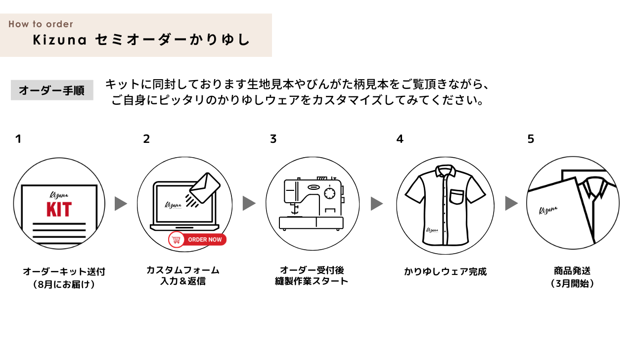 弊社自社ブランドKizunaが展開するセミオーダーかりゆしウェアをお届け致します