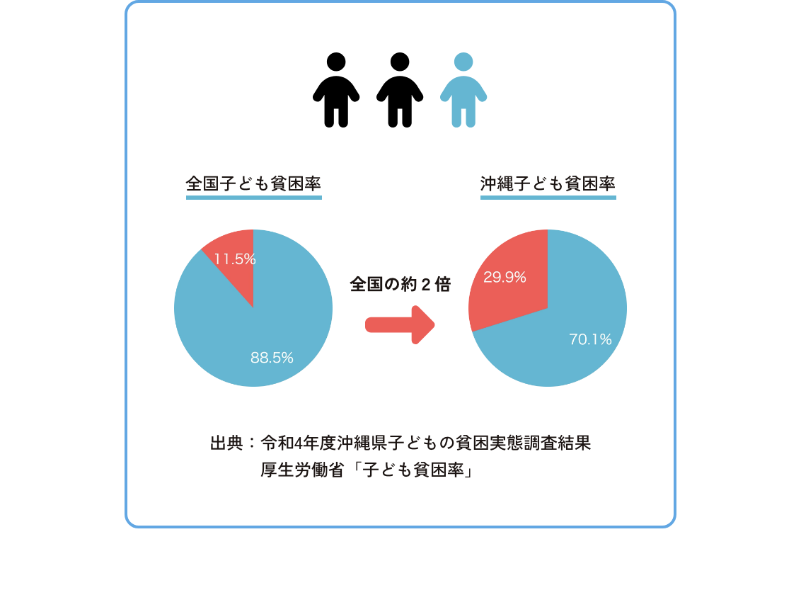 沖縄では、子どもの 約3人に1人(29.9%) が相対的貧困の状態にあります。