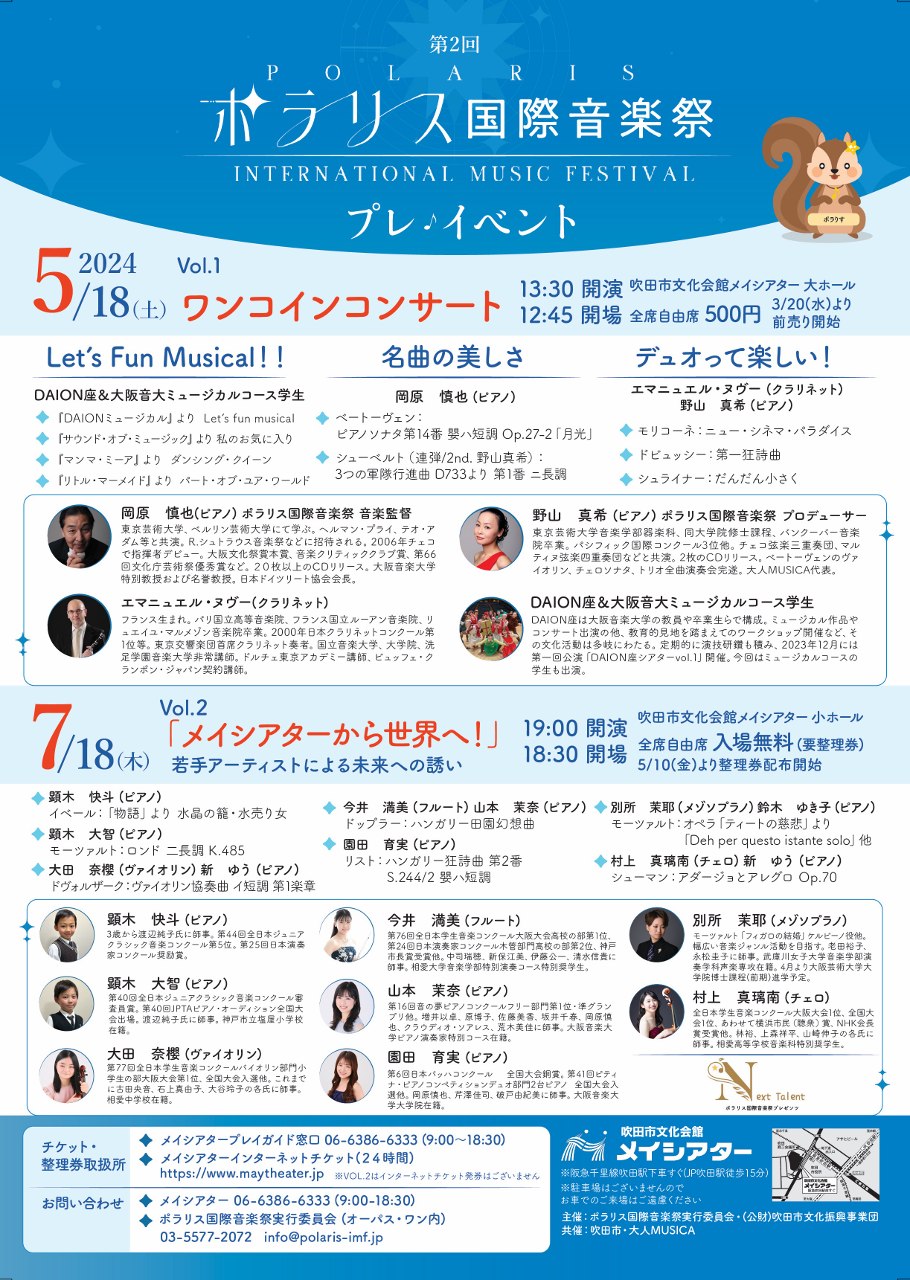 2023年10月、大阪の吹田の街に国際音楽祭が誕生しました。一流の演奏を手頃な価格で聴くことができる贅沢な音楽祭です。2日間の期間中、それぞれ60分ほどの短いプログラムで、クラシックや映画音楽、0歳から聞ける読み聞かせコンサートなど、バリエーションも多彩で豊富。ドイツからやってきた演奏家も大喝采をあびました。ロビーにはストリートピアノが置かれ、外にはキッチンカーが並び、クラシックに普段馴染みのない方々も含め、主催者の予想を上回る多くの方々が訪れました。
