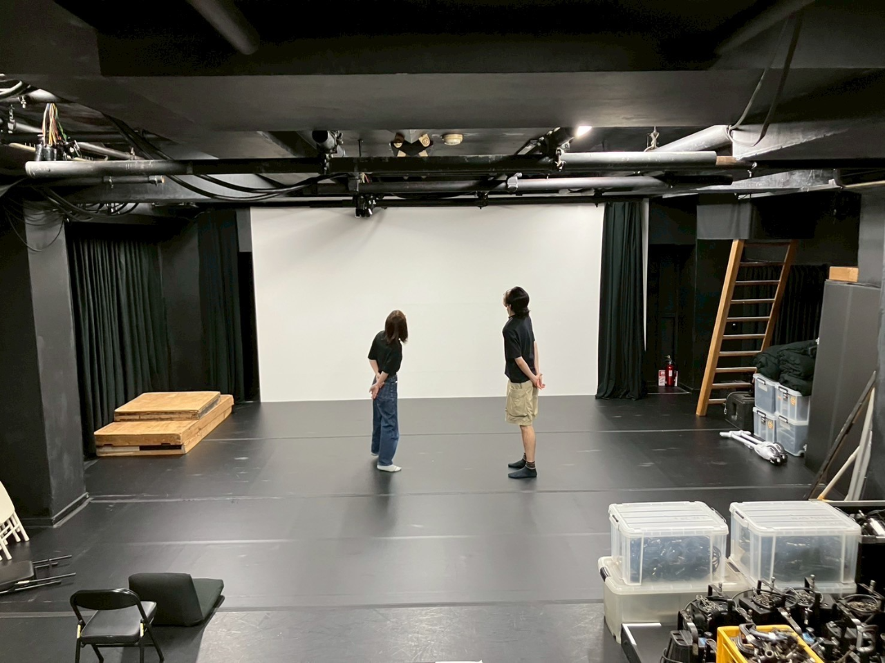 稽古後、会場のウイングフィールドに舞台監督の村田さんに連れられて下見に行き、舞台の打ち合わせをしてきました。