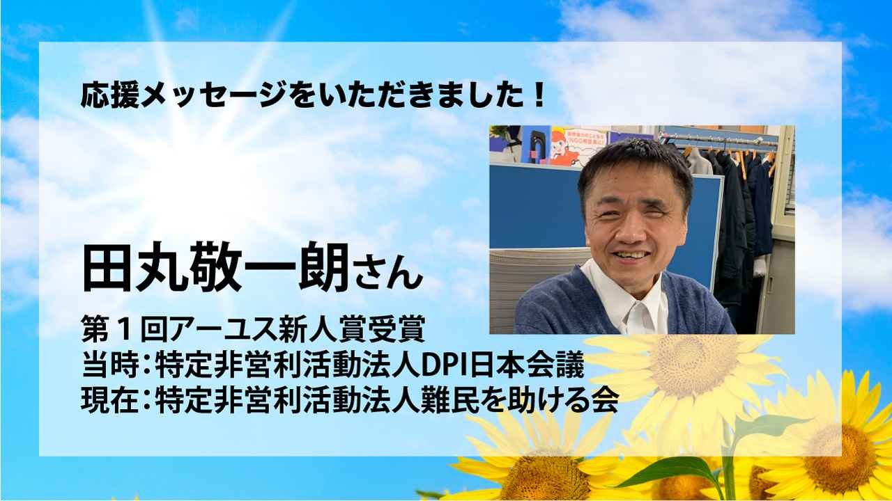 皆様。初めまして。第1回アーユス新人賞を受賞させていただきました、田丸敬一朗ともうします。今回は、過去の受賞者として、このクラウドファンディングの賛同者として、応援メッセージを送らせていただきます。