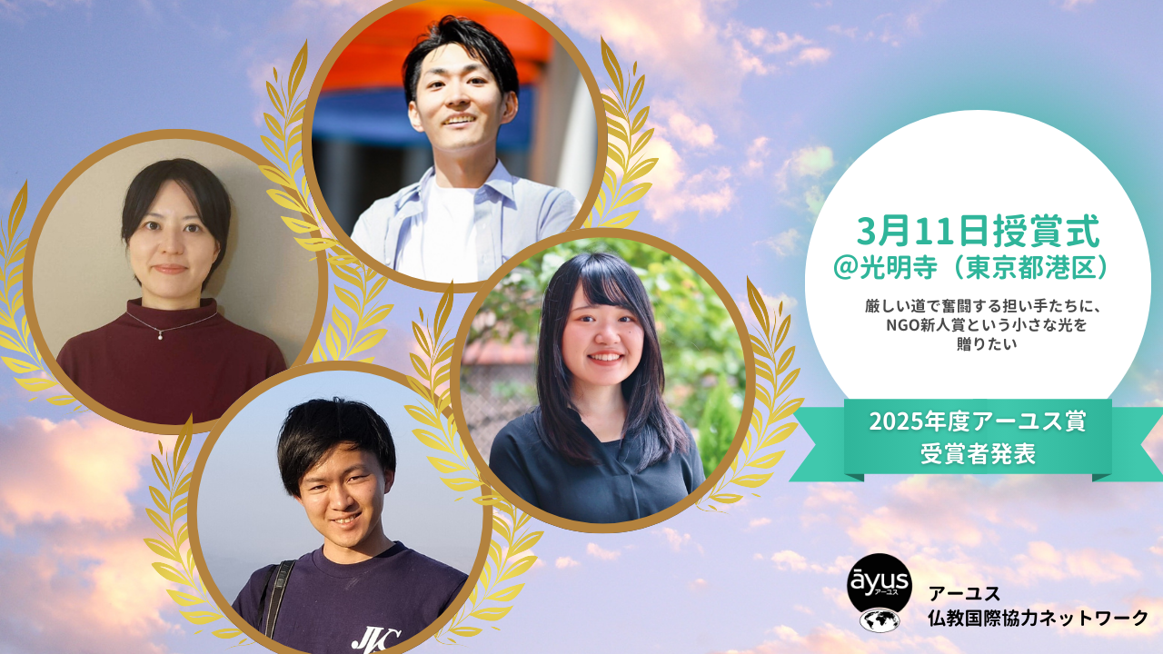 今年もアーユス賞の受賞者が決定しました。皆さまにご協力をいただいた2025年度のクラウドファンディングのおかげをもちまして、今年のアーユスNGO新人賞は、多くの推薦・応募をいただいたなかから4名の方に授与できることとなりました。