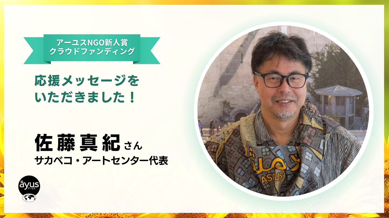 パレスチナやイラク、シリアなど中東地域の支援活動に長く携わり、現在はフリーで国際協力アドバイザーやアーティストとして活躍されている佐藤真紀さんから、心強い応援のメッセージをいただきました。