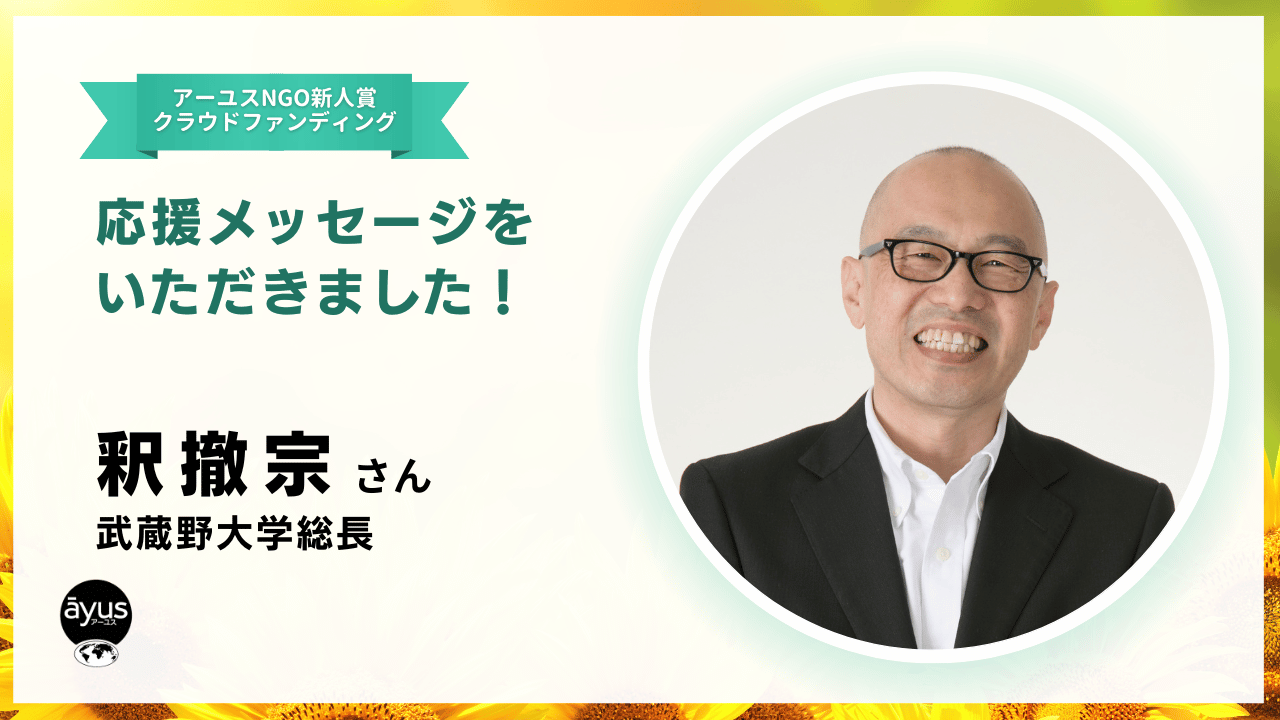 東奔西走でご多忙のなか、「アーユスの『NGO新人賞』設立の真摯な願いを受け止めてほしい!」と、力強い応援メッセージを頂戴しました。