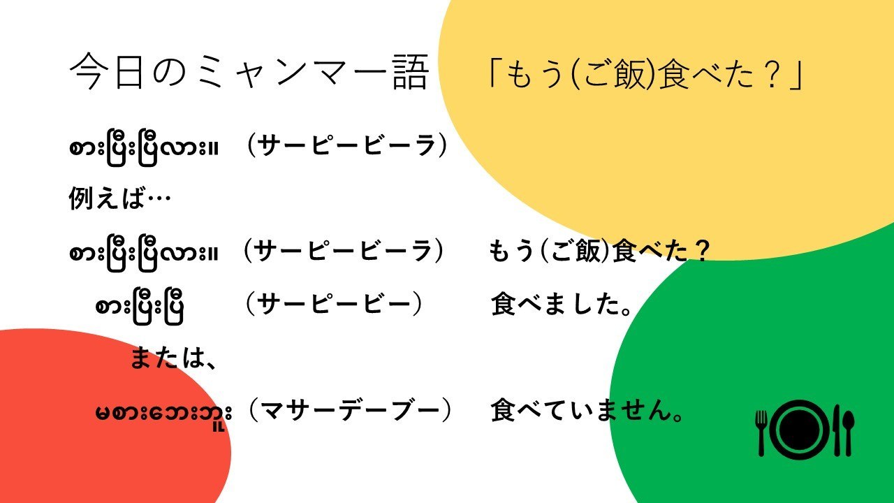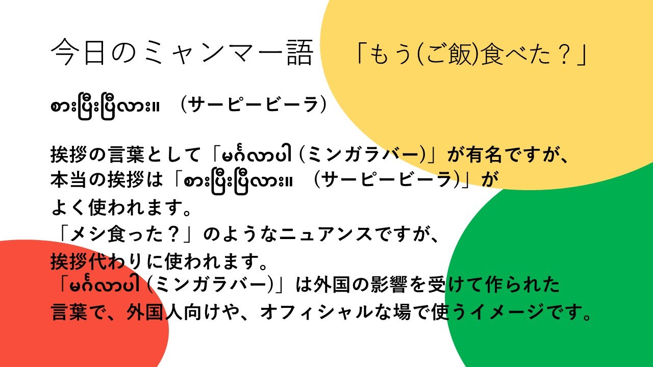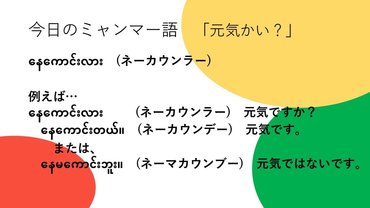 いつもご支援をありがとうございます。「きょうのミャンマー語」二回目です。
