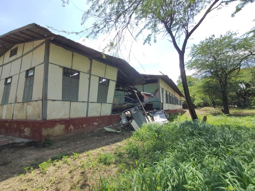 (上写真:校舎北側からの破損状況)