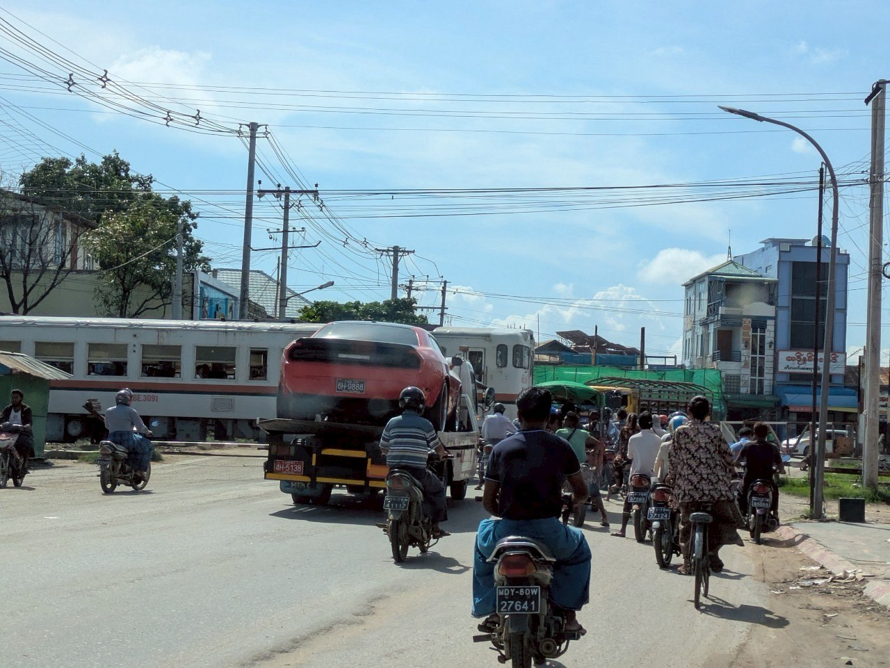(上写真:ピョウボエ中心部の踏切。待ち時間が長い)
