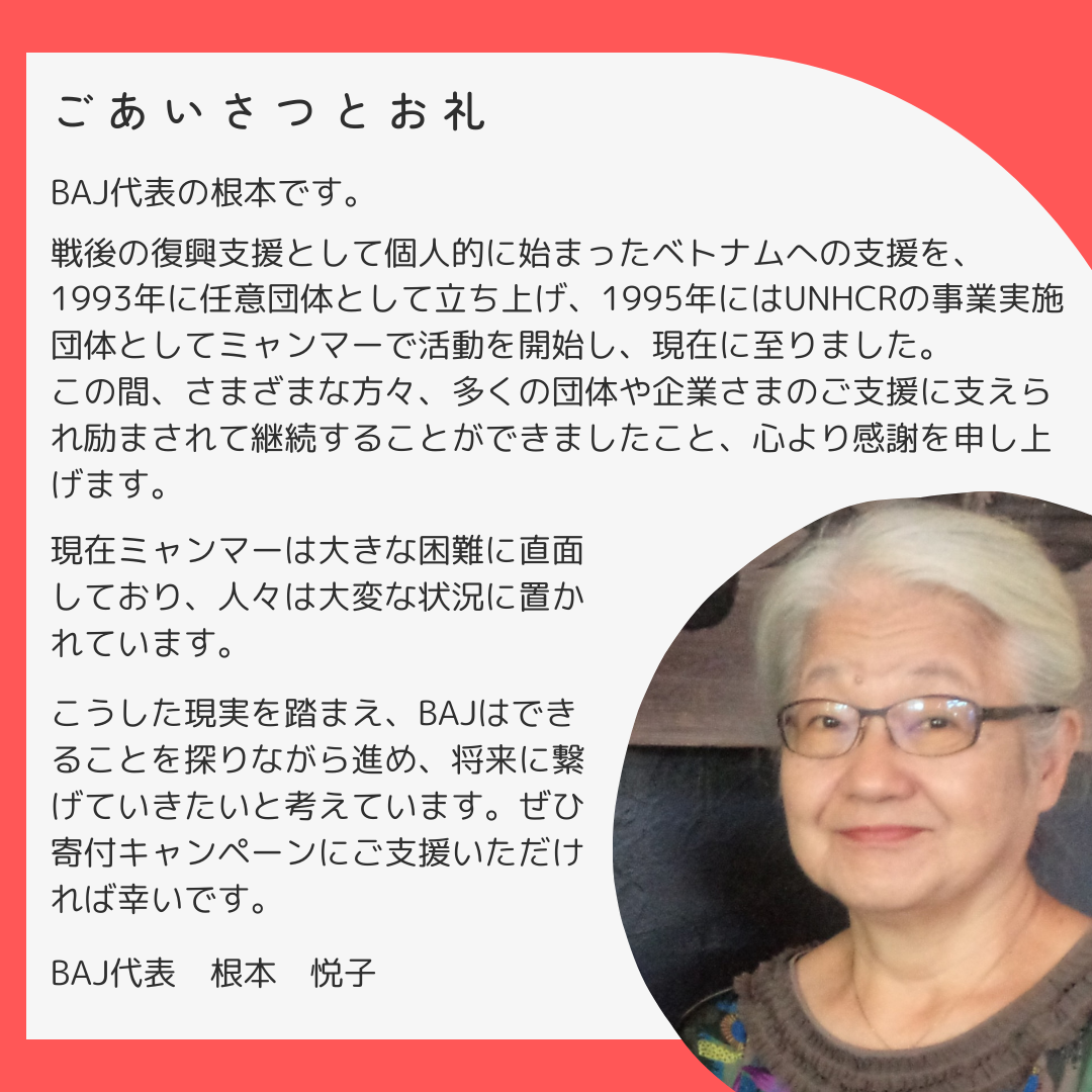 BAJ30周年募金キャンペーンがはじまりました。さっそくご支援をいただき誠にありがとうございます!開始3日目で達成率30%に届きました。100%目指してがんばっていきます。本日は、BAJ代表根本からのあいさつとお礼のメッセージを掲載します。引き続き応援のほど、よろしくお願いします!