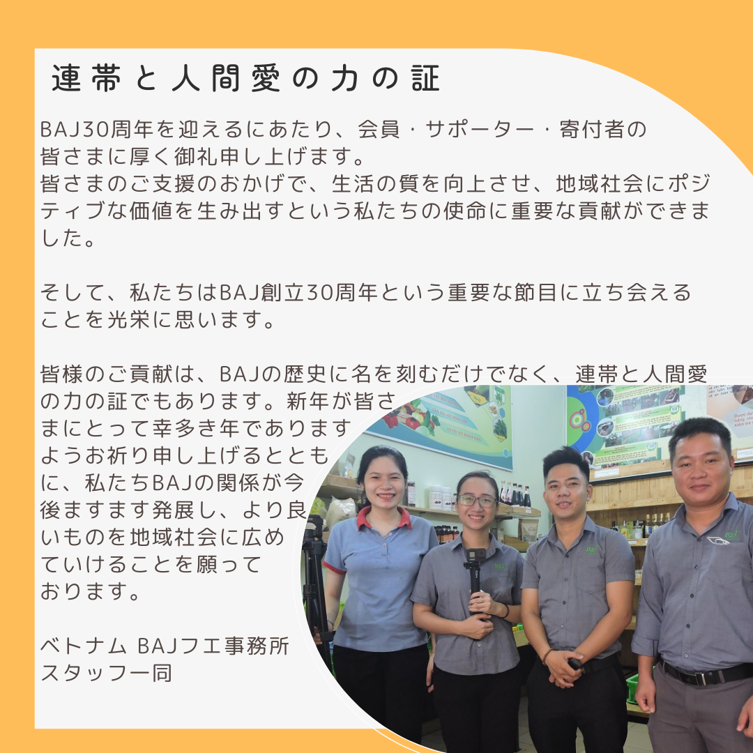 【感謝】認定NPO法人ブリッジ エーシア ジャパン(BAJ)は設立30周年を迎えました。そこで30年目の特別な募金キャンペーンを行ないます。これまでの歩みを共にふり返りながら、わたしたちの次なる10年の挑戦を応援してください!