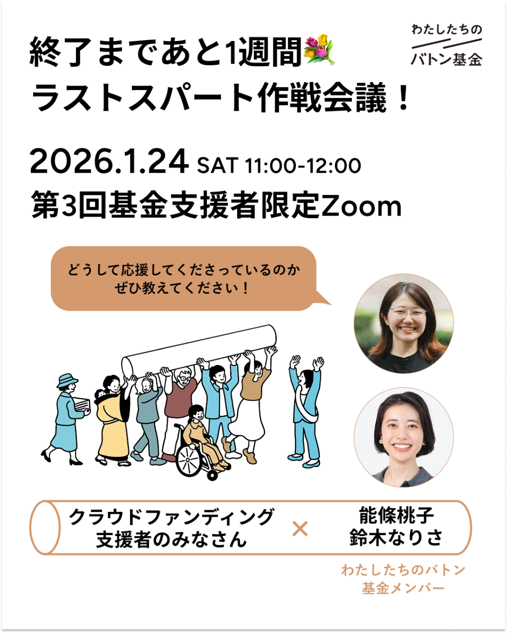 【1/24(土)】第3回「わたしたちのバトン基金」支援者限定Zoomを開催します