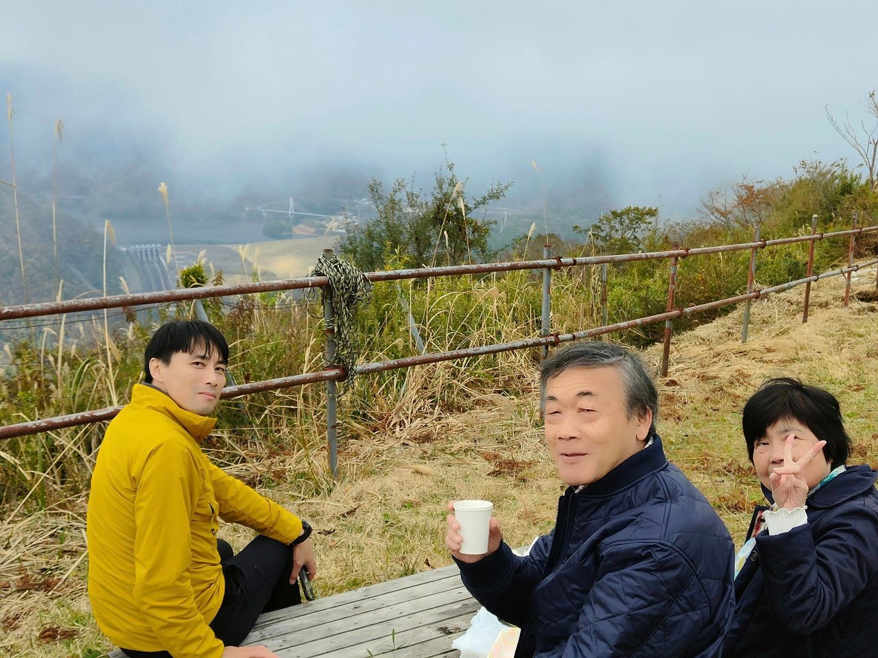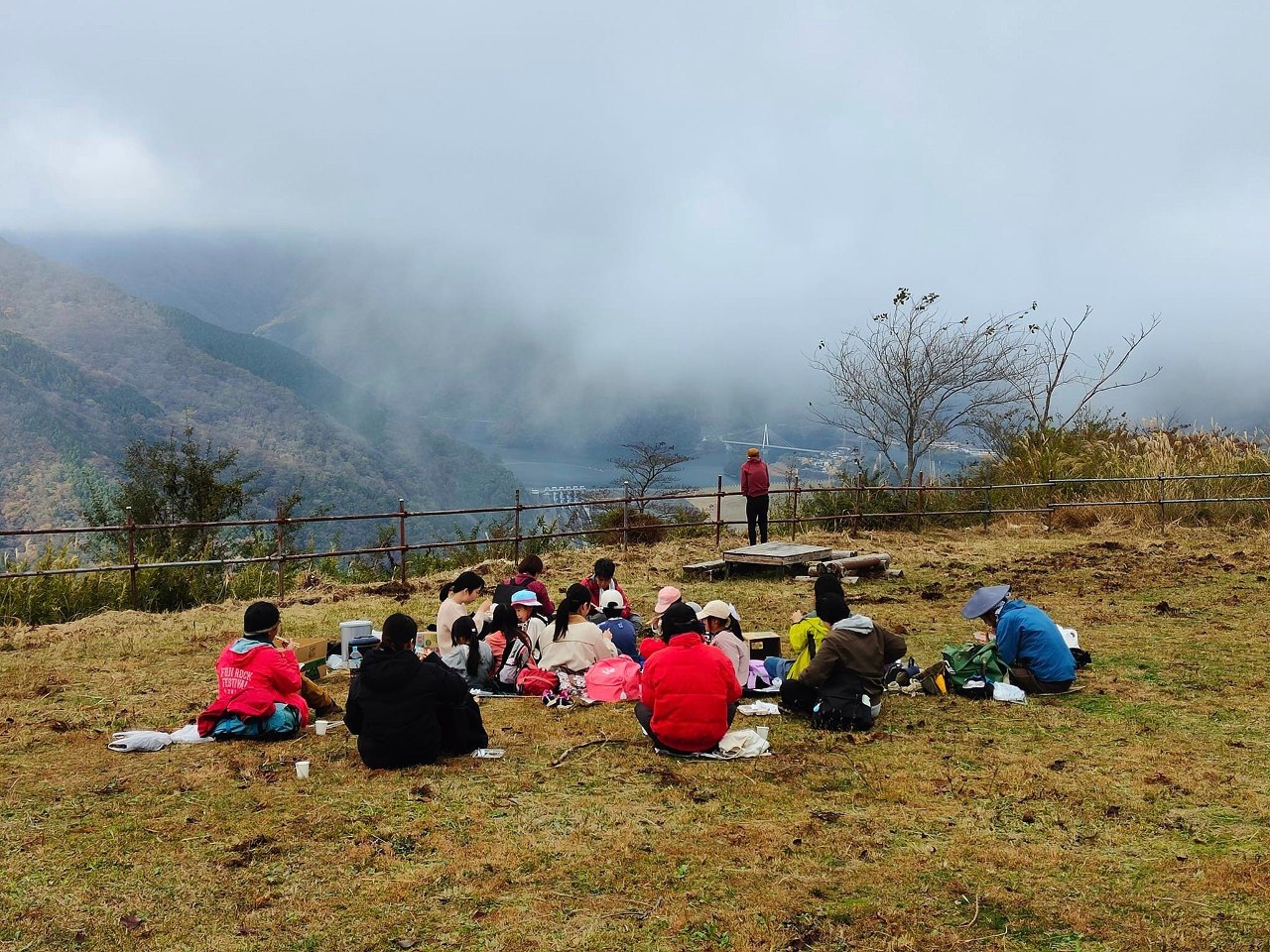 大野山に遠足に来ていた子ども食堂のみなさんと山頂で一緒にお弁当を食べました。