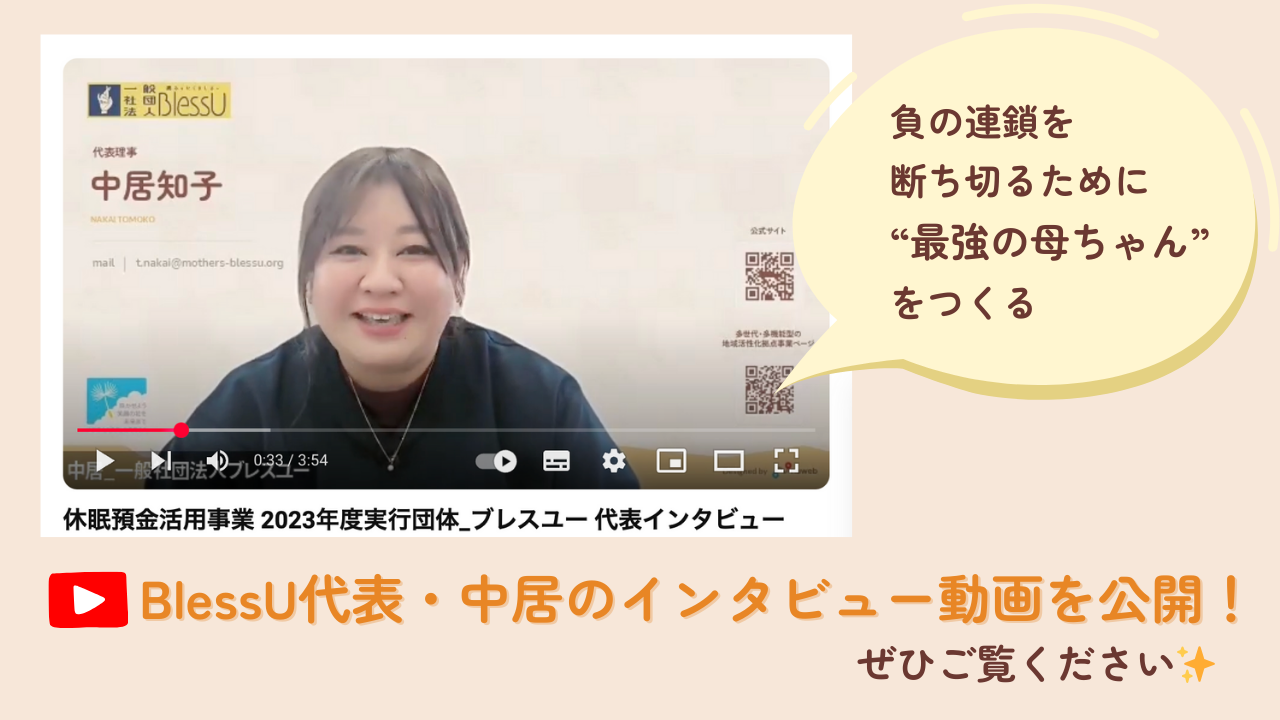 休眠預金活用事業の2023年度実行団体としてブレスユーが採択された際の、代表・中居のインタビュー動画をご紹介します!