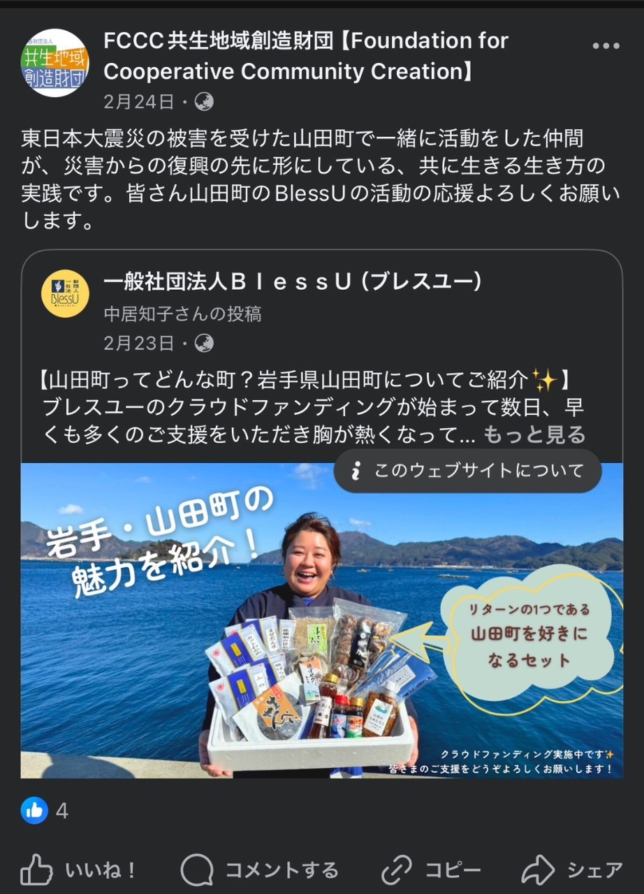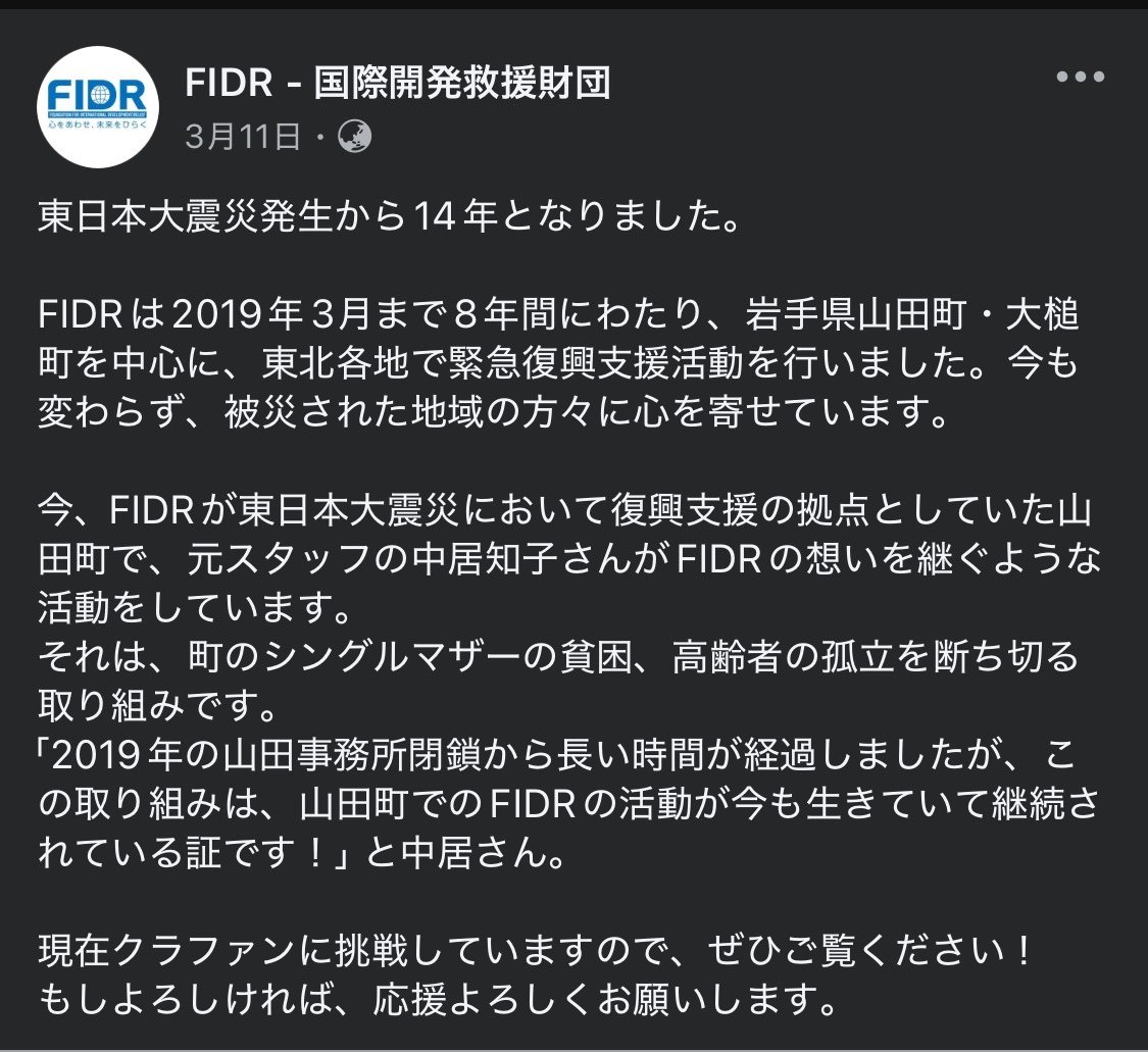 その他にもFIDR時代に山田町にボランティアとして来てくださった当時 日本体育大学の学生だった方からも、10数年の時を経て再び山田町を応援いただきました!