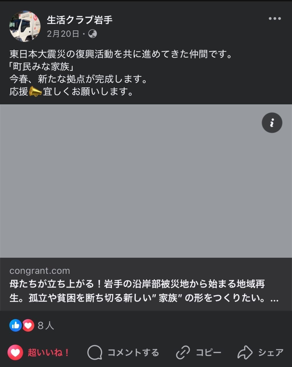 ・プロジェクト名:母たちが立ち上がる!岩手の沿岸部被災地から始まる地域再生。孤立や貧困を断ち切る新しい”家族”の形をつくりたい。