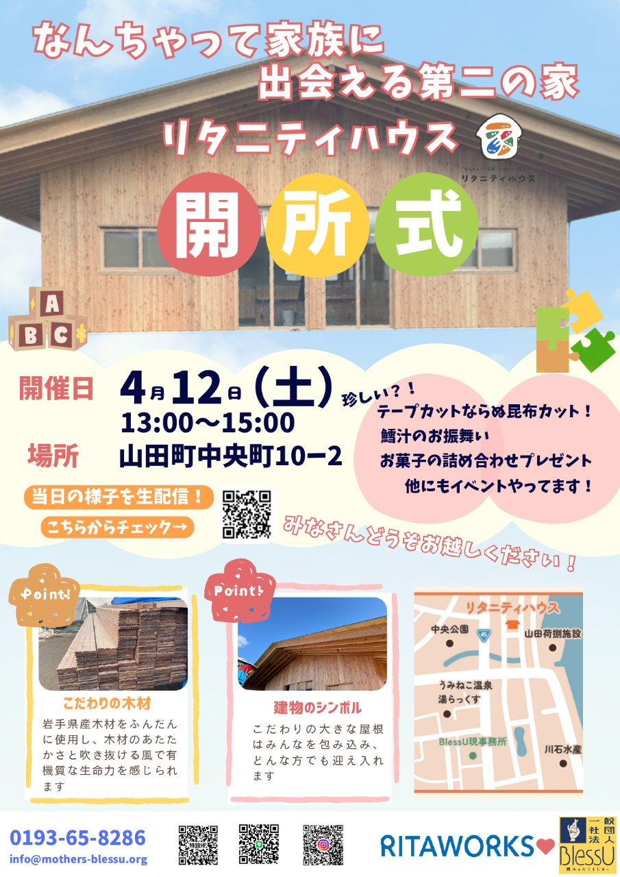 ついに4月12日(土)、リタニティハウスの開所式を開催いたします✨