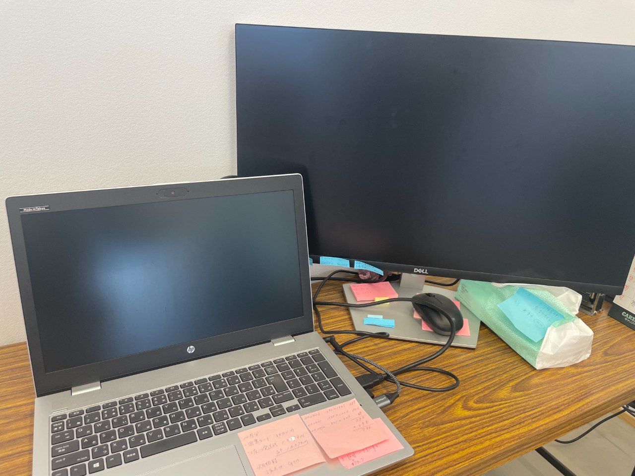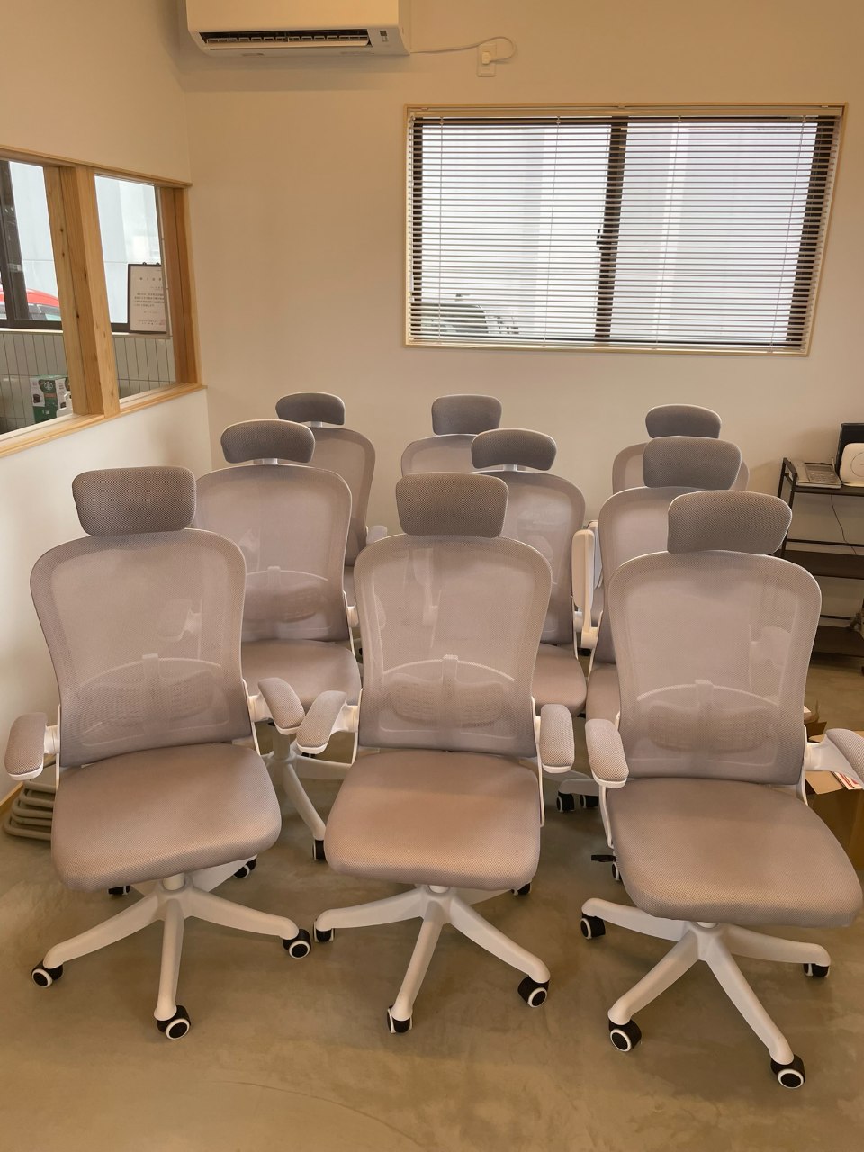 わたしたちの働くデスクは会議用テーブルのままです。
