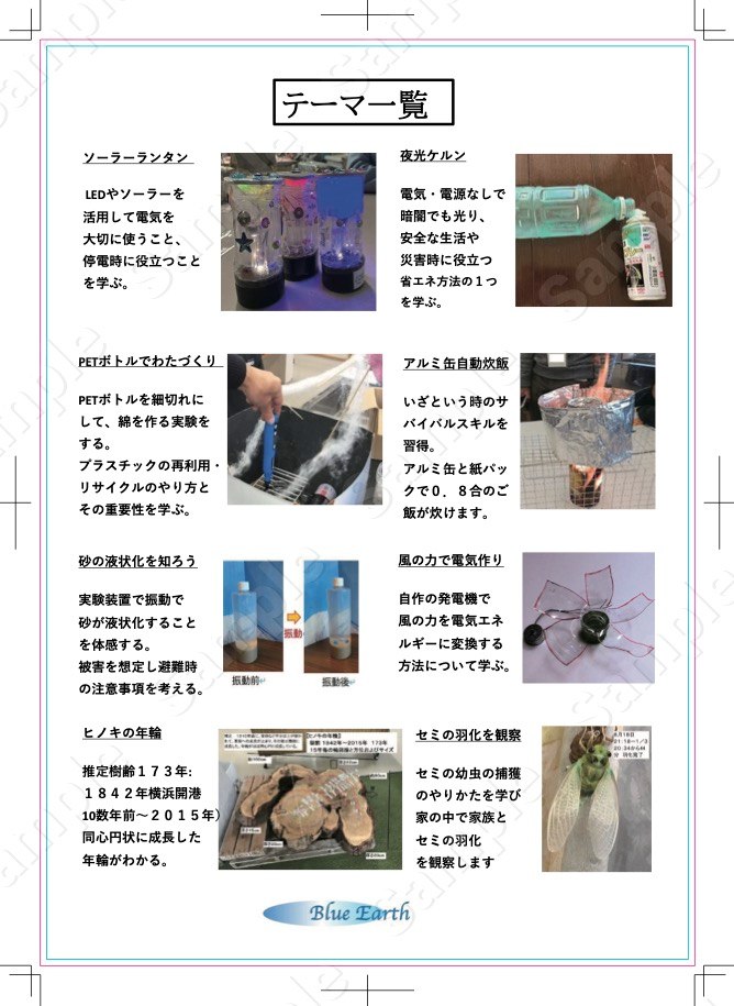 「おもしろ環境教室」は、”青い地球を次世代に”をキャッチフレーズとした地球環境問題や温暖化対策そしてエコライフスタイルに関する体験型の教室です。