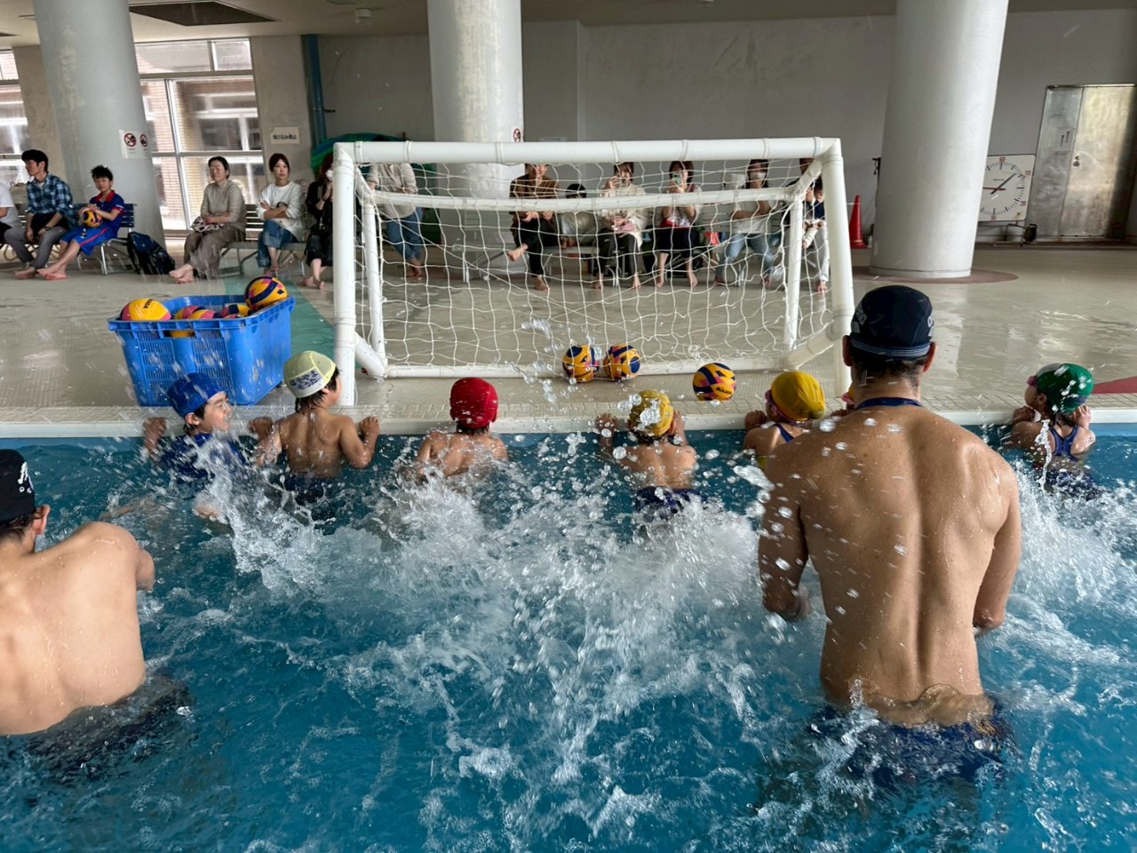 ・初心者水球教室:地域のプレゴールデンエイジ(3~8歳程度)を対象に、様々な運動要素のつまった水球で、運動機能の基礎をつくって運動好きな子供たちを増やして健康で豊かな街づくりを目指しています。