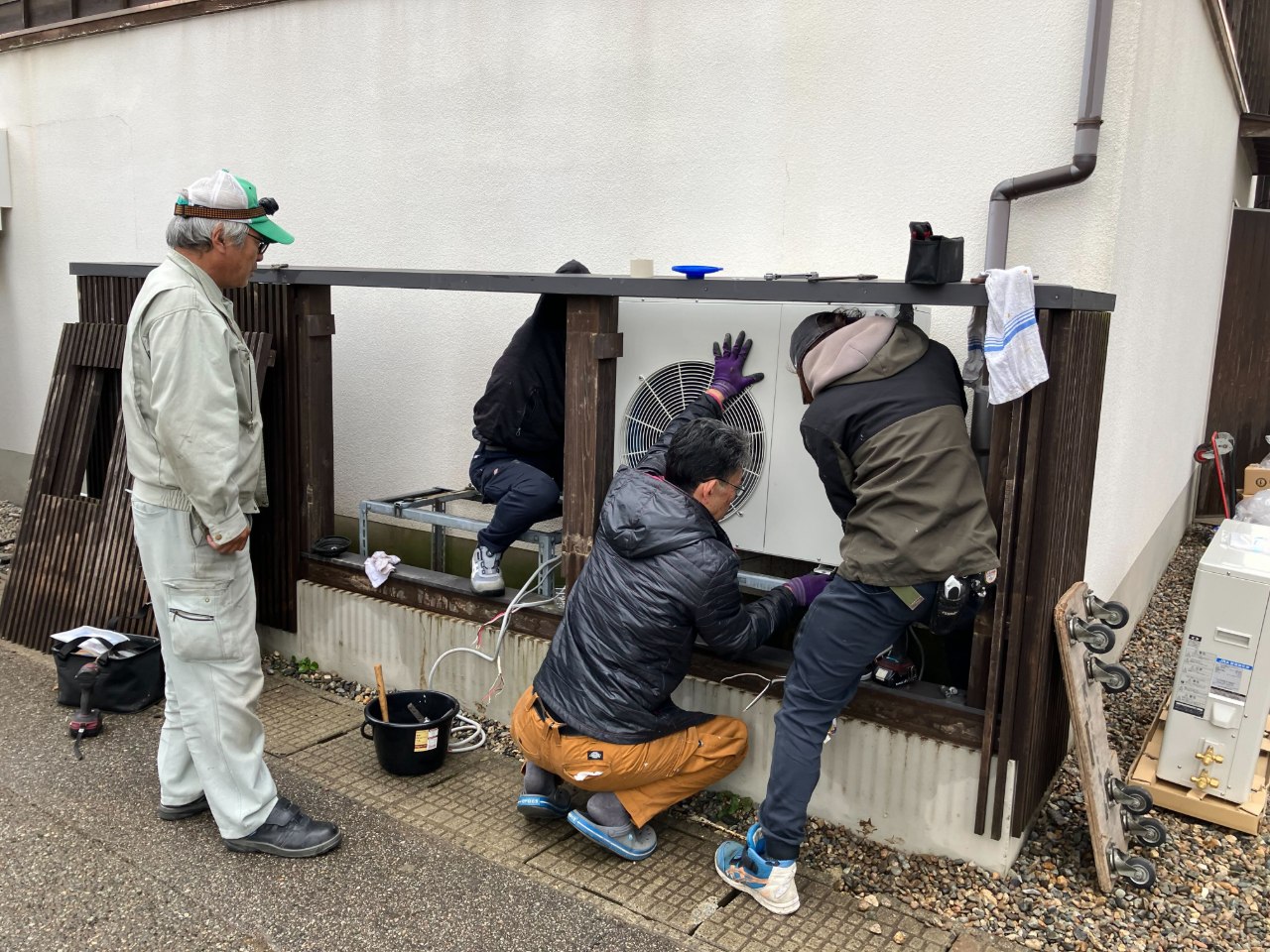 建築施工会社の方々が床下清掃と水分量を調査。