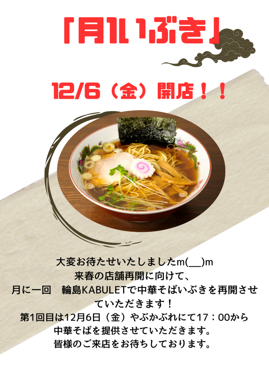 店舗再開をめざして、「月一いぶき」で美味しいラーメンをお届けしていきます!