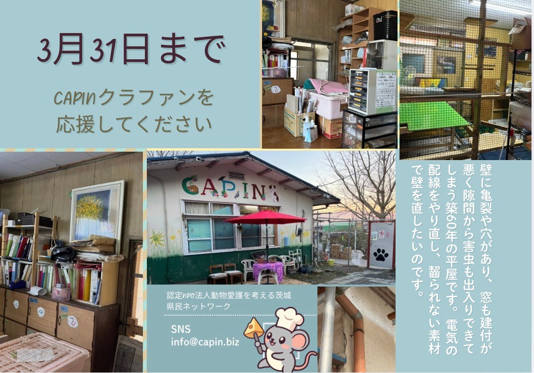 本プロジェクトは、税制上のメリット(控除)があります。ご支援金は、認定NPO法人動物愛護を考える茨城県民ネットワークCAPINへの寄附金として受領いたします。