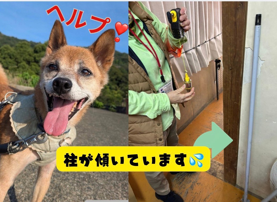 (耐震工事の必要性)先日、プロの建築家の耐震調査を受けたところ耐震基準を満たさないことが分かりました。基礎にヒビが入り、大黒柱の上に錘を下げたら柱自体が斜めに曲がっています。平屋事務所が全体的に南側に傾いているようなのです。壁に筋交いもありません。窓が多く壁が少ないため、強めの地震で倒壊する可能性が高いとのことでした。この平屋にはシニア犬たちが暮らしています。早急に手を打ちたいと考えます。