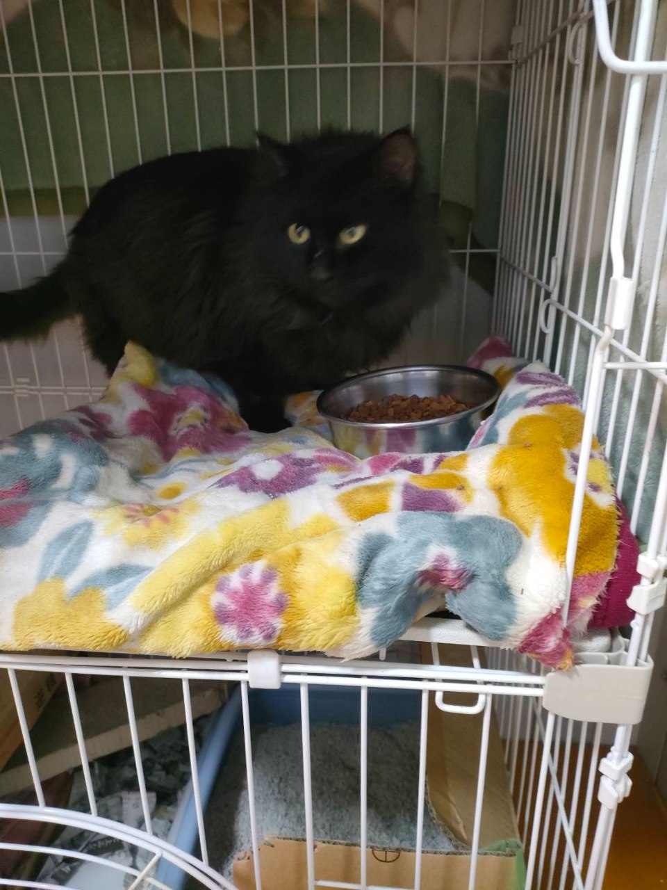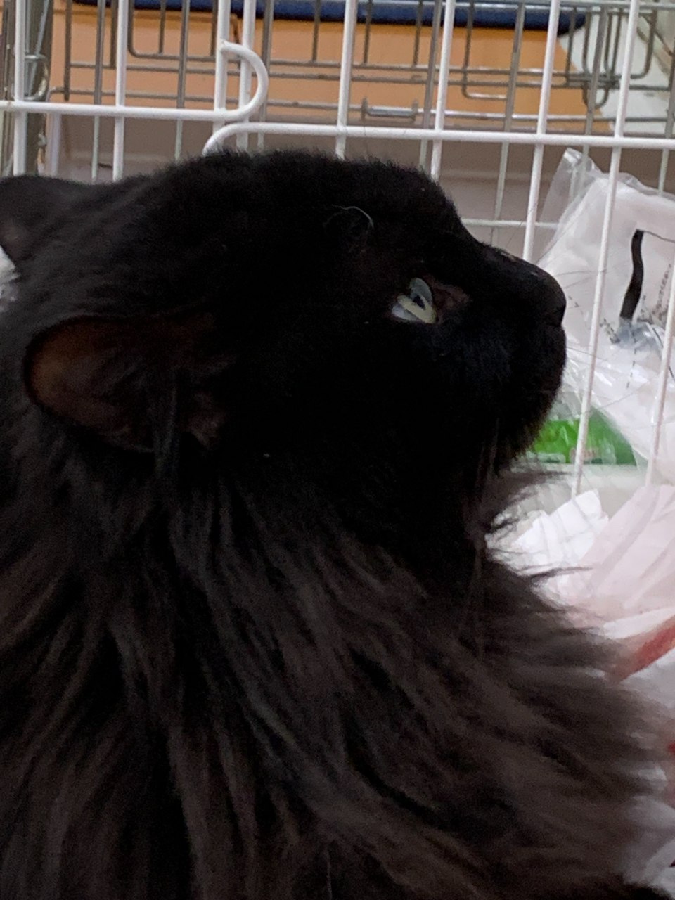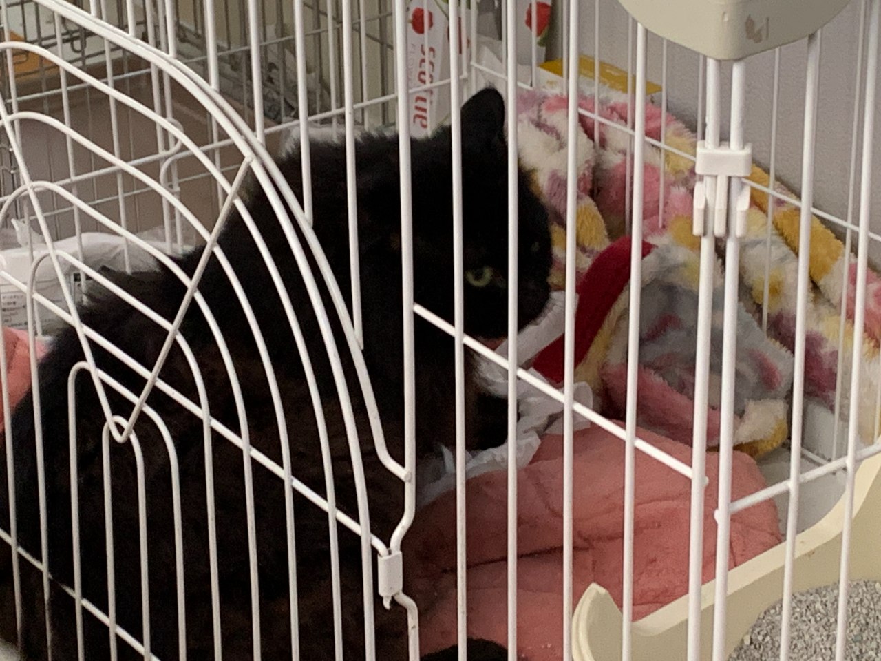 捕獲機でつかまえた猫エイズ陽性のハイド君。ゴージャスな長毛黒猫ですが、激しい性格。
