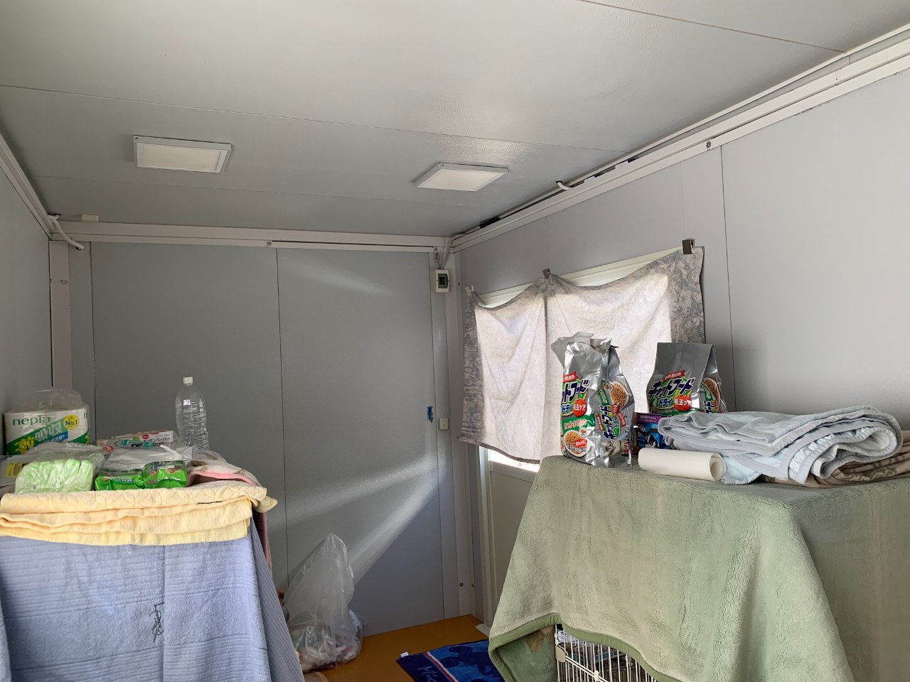 何より嬉しいのは暖かいことです。エアコンも新しく、また断熱材がしっかりしています。昼間は太陽がさんさんと当たるので、冬でもエアコンなしで大丈夫です。コンテナのご支援、誠にありがとうございます。エイズ陽性猫の専用ハウス。誠にありがたいです。