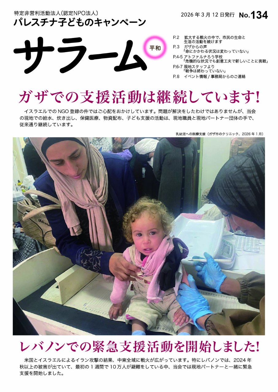 2026年3月 認定NPO法人 パレスチナ子どものキャンペーン
