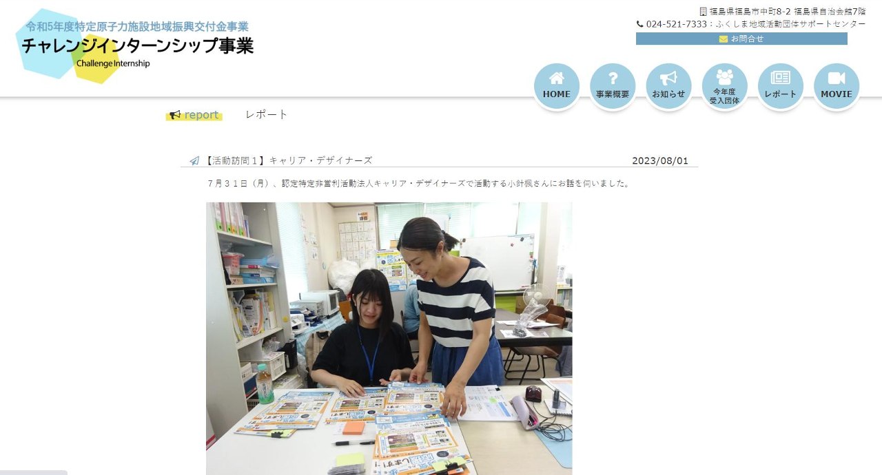 認定NPO法人キャリア・デザイナーズは、今夏、福島県「チャレンジインターンシップ」に参加し、インターン生を受け入れております。
