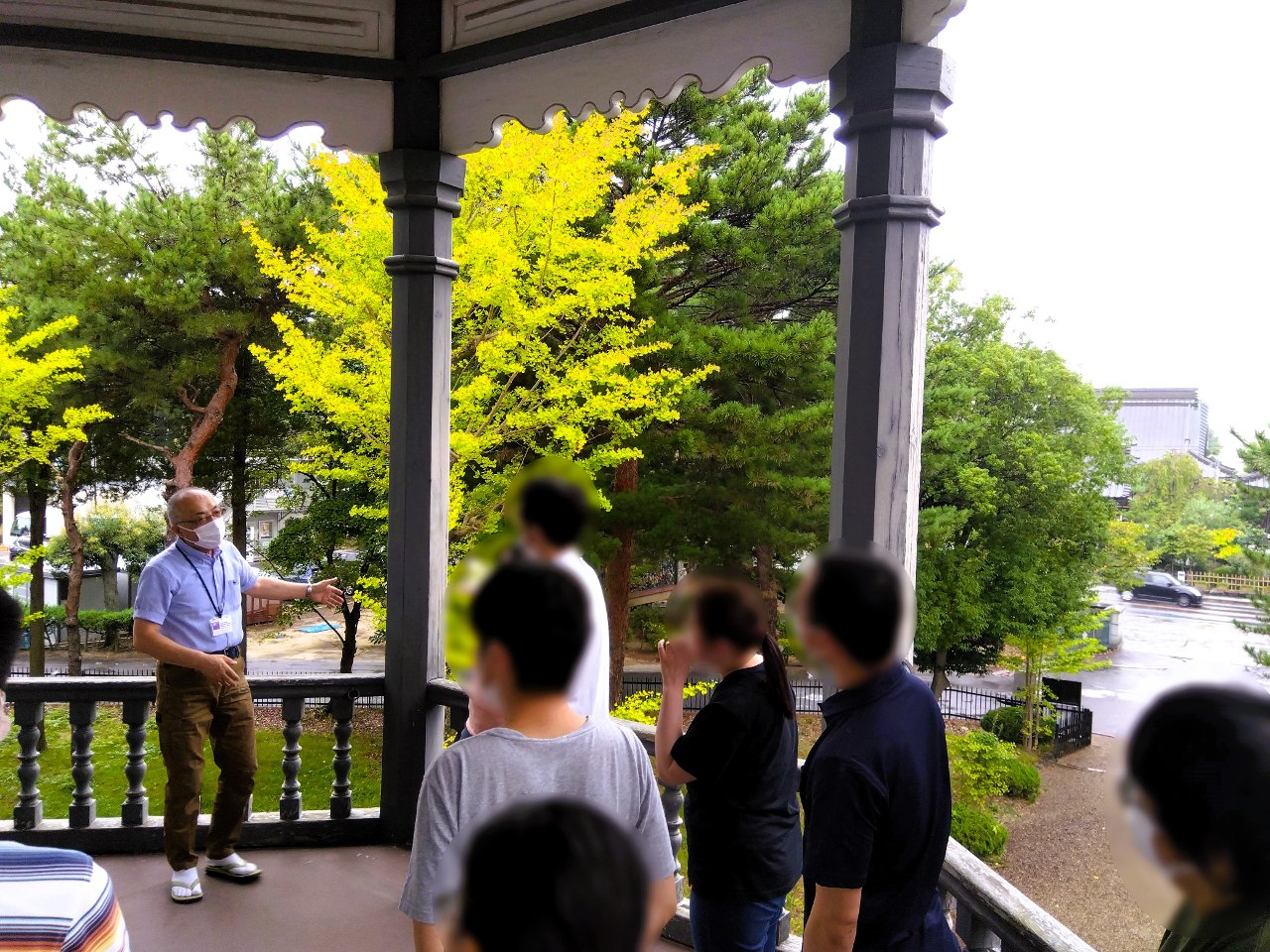 当日は、安積歴史博物館の橋本文典業務執行理事(普段は「橋本館長」とお呼びしています)にご多用の中、わざわざガイドをしていただきました。橋本館長の温かく、ユーモアにあふれた語り口で、築134年になる安積歴史博物館について、例えば、建物の構造、歴史など、当時の学生や関わった人々の息吹を感じながら、様々なお話をしていただきました。ありがとうございました。