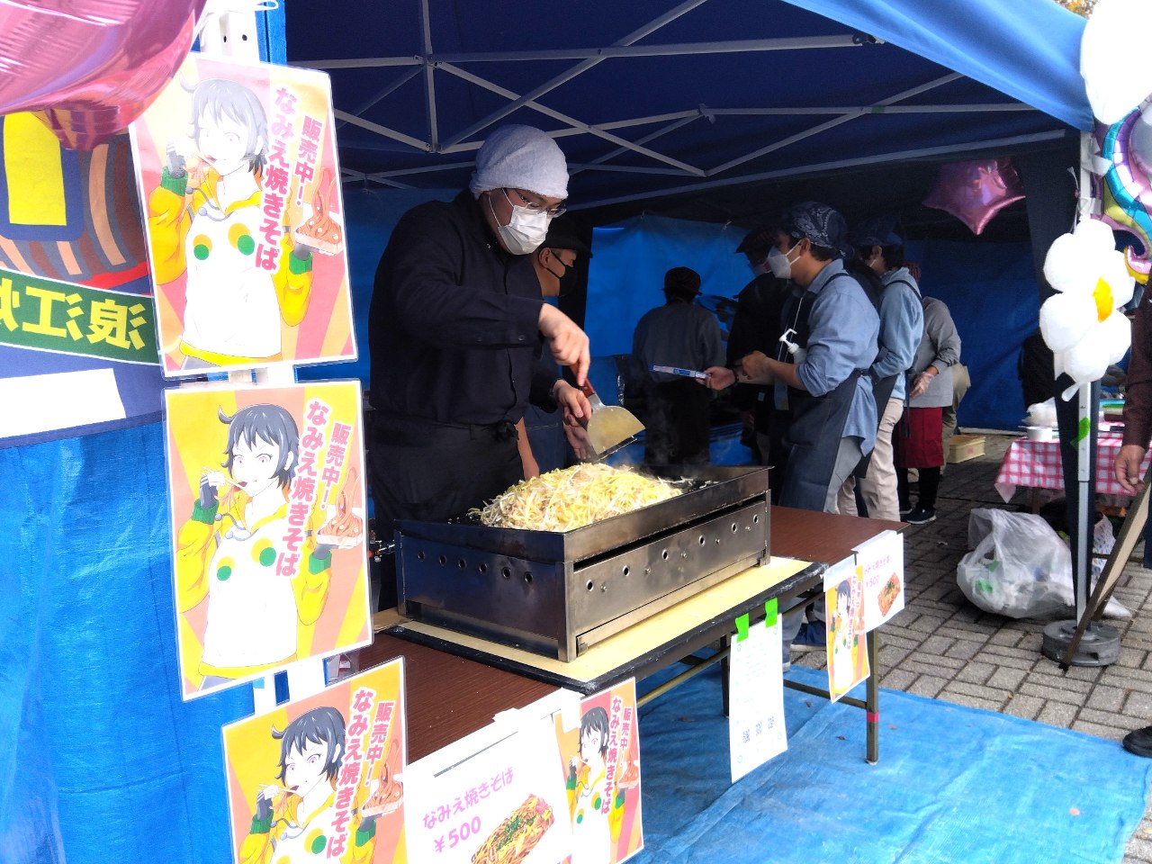 当日は、なみえ焼そば、豚汁、じゃがもちの調理・販売のほか、農福連携による農作物などを販売しました。