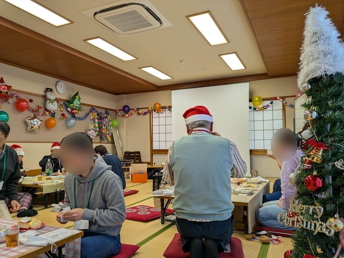 クリスマス交流会を開催しました。設営、レク、調理などで協力しながら、楽しく交流して開催できました。