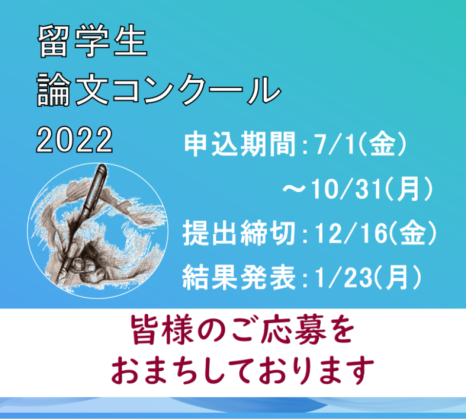 当事業は、留学生の日本語による論文作成能力を向上させる機会を提供するとともに、日本留学の成果を広く発信し、国際相互理解及び国際交流を促進することを目的としています。2009年から2021年まで12回(2011年は東日本大震災により中止)にわたって実施され、累積の応募者数は600人(約30の国と地域)を超え、受賞者は15か国、44大学の76人を数えています。