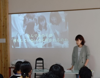 「学生の頃からコミュ障で人づきあいが苦手だった」と話されていた西村社長ですが、ご自身の努力と行動力によって、コミュ障でも出来るコミュニケ―ション法を編み出されていました。本日はその一部を教えて頂き、みんなで楽しくワークも行いました。(ワークでは、年上のお姉さん達が年下の子達に優しく教えている姿も見ることができ、とても微笑ましい時間でもありました)