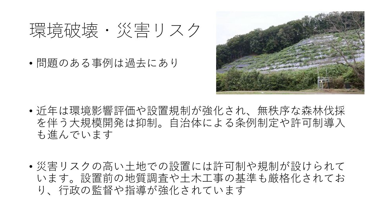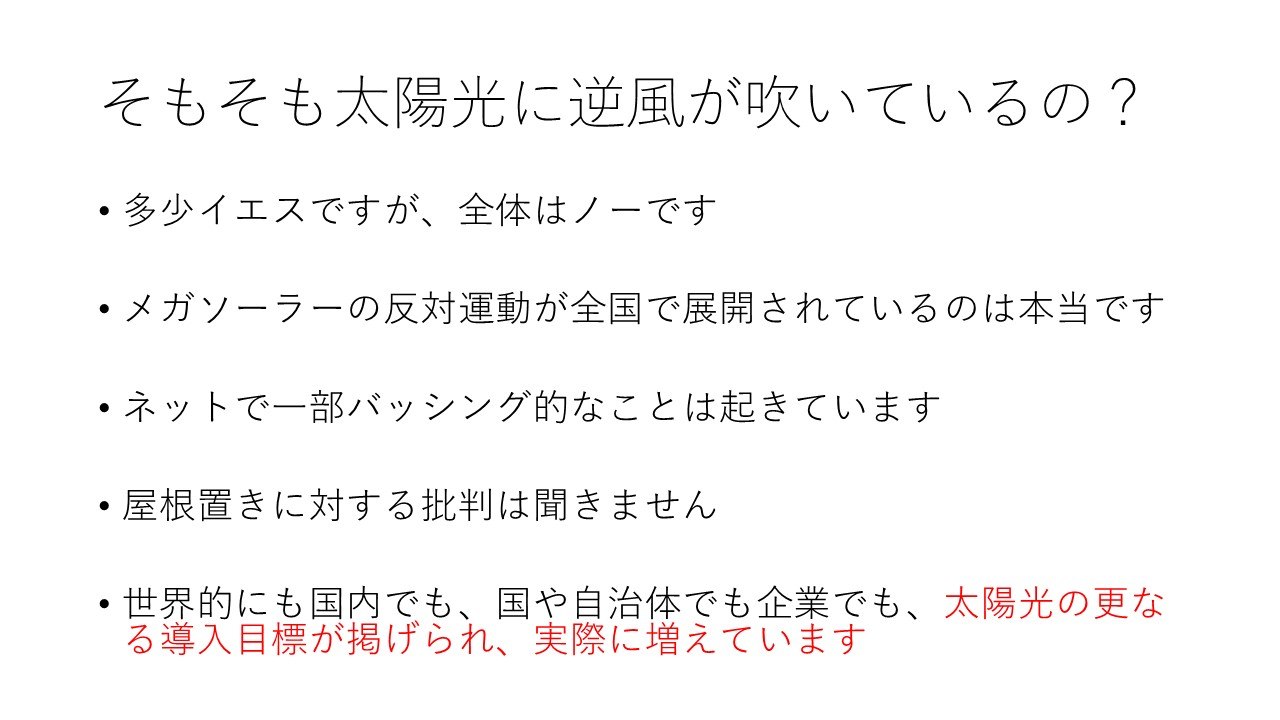 今回は、最近逆風が吹いているとも言われる太陽光の懸念についてお話しします。