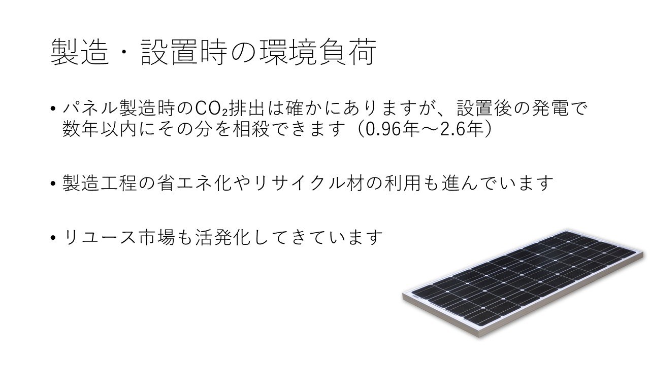 最後に、太陽光パネルを作る際の環境負荷についてです。