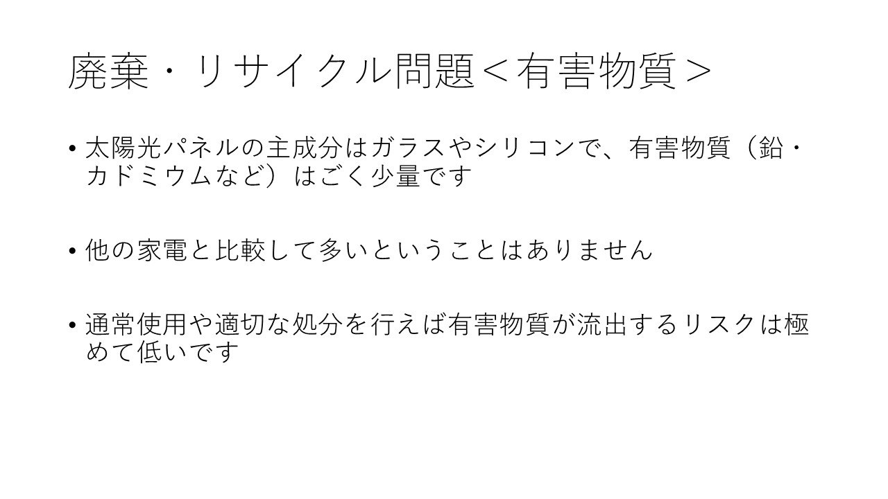 他によく言われる懸念は廃棄問題です。こちらはどうでしょうか。