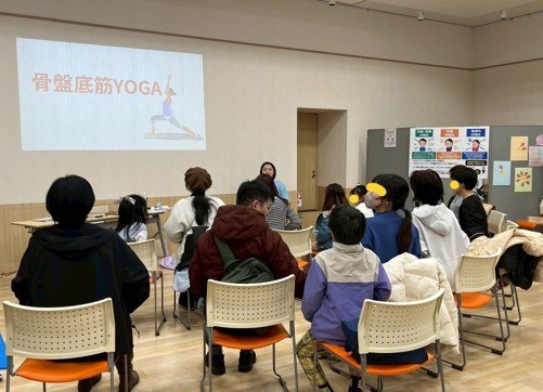 当初予定していた講師1名の体調不良により内容の一部変更がありましたが、ヨガ講師による骨盤底筋ストレッチへ切り替え、参加者の皆さんには楽しみながら体験していただくことができました。
